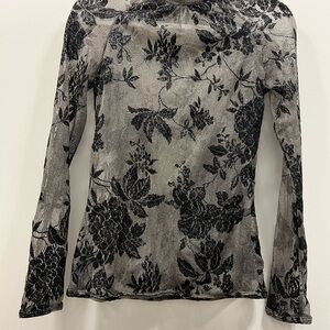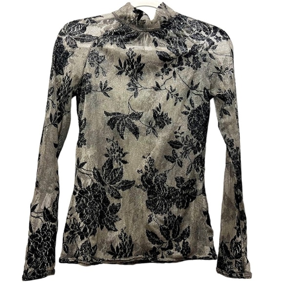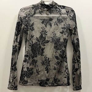 ETINCELLE COUTURE PARIS Sheer Mock Neck Floral Blouse