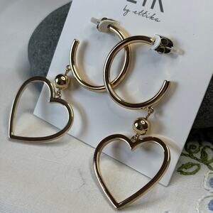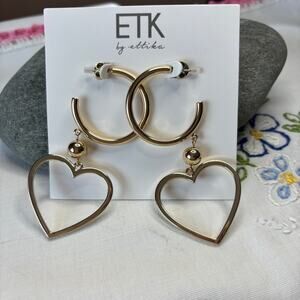 ETK by Ettika Gold Hoop Heart Earrings NWT Minimal MOD Retro Darling Gift