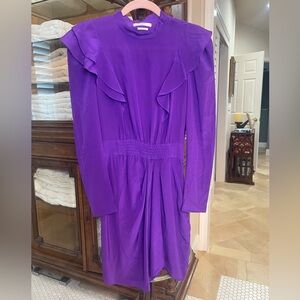ETOILE ISABEL MARANT Yoana Long-Sleeve Ruffle Short Dress EUC Size 34 (US XS) Self: 100% silk. Lining: 100% viscose.