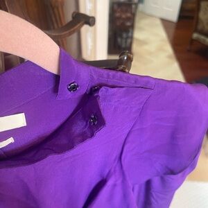 Partially lined. Band collar with hidden snap closure along shoulder seam.