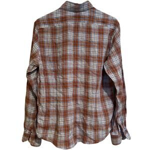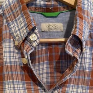 ETON Blue Brown Plaid Casual Collared 100% Linen Button Up Shirt Men's MEDIUM M