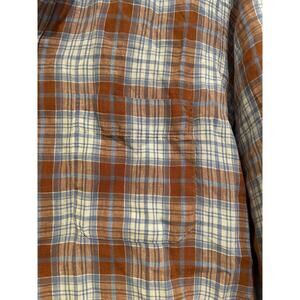 ETON 100% Linen Button Up Shirt Blue Brown Plaid Casual Collared Mens MEDIUM M