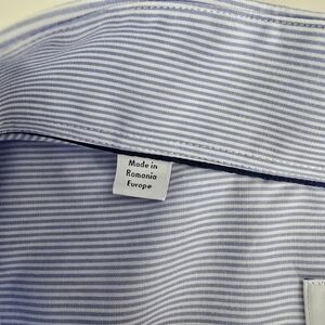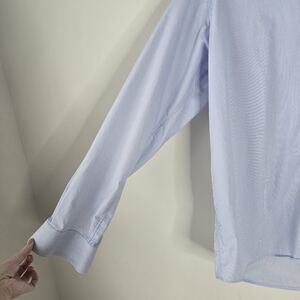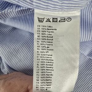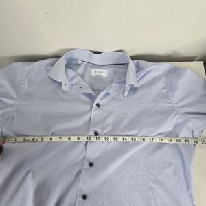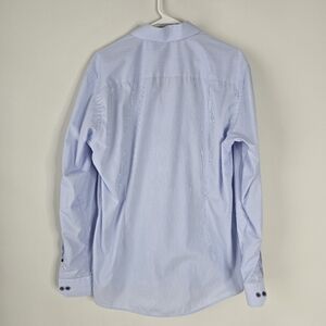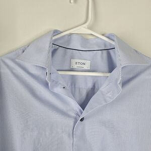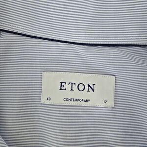 Gently used ETON Contemporary 100% Cotton Long Sleeve Button Front Shirt in a size 17 43. Colors are white and blue striped.