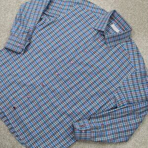 ETON Dress Shirt Men 17, 43 Blue/Green/Purple Plaid Long Sleeve Button Up
