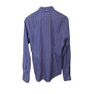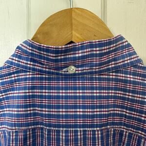 ETON Mens Button Down Shirt Plaid Check Slim Large 42 Pocket 100% Cotton Blue Red White Casual Work Career