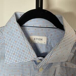 ETON Men's Slim Fit Dress Shirt With Check Print Size 44/17.5 Long Sleeve