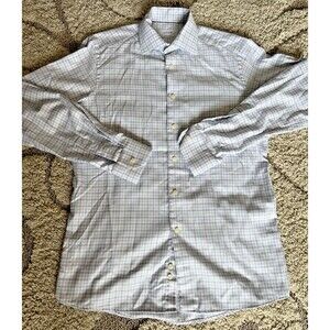 ETON Shirt Mens 15.5 39 Medium Blue White Plaid Contemporary Fit Dress Business