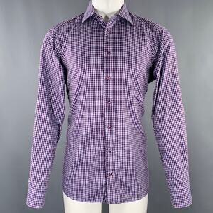 ETON Size M Purple Blue Gingham Cotton Long Sleeve Shirt