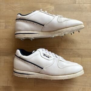 ETONIC Retro 7091 Metal SPIKED GOLF SHOES WHITE Pinstripe LEATHER UPPER MENS 8 M