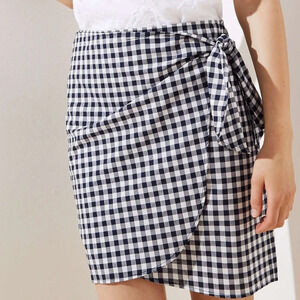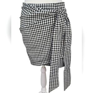 ETOPHE STUDIOS Gingham Wrap Mini Skirt with Tie Front In Black/white. Size Med