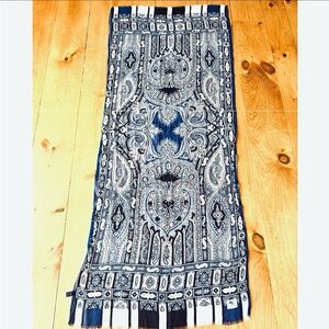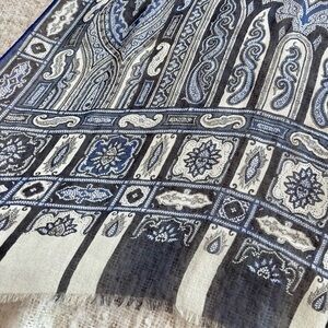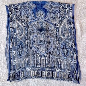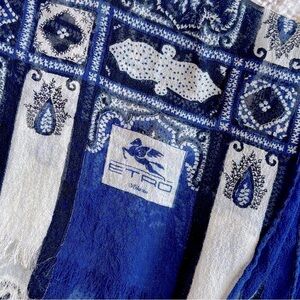 Elegant Etro scarf with intricate blue and white patterns. Not gonna lie, this is one of the prettiest scarves I’ve ever seen in person. The silk jumps out at you and you’ll feel like a $1M with it wrapped around your neck.. I promise!
