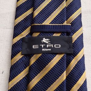 ETRO STRIPPED NAVY and GOLD 100% SILK TIE.