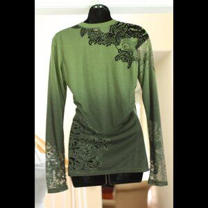 A pretty green fade long sleeve shirt with see-through perforated decorations by Etro!