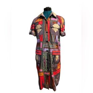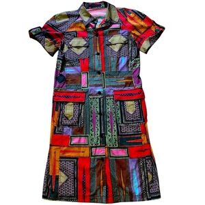 ETRO Italy Womens Multicolor Geometric Patchwork Design Shirt Dress Size 42