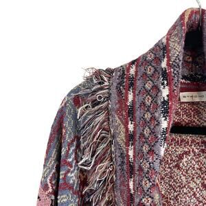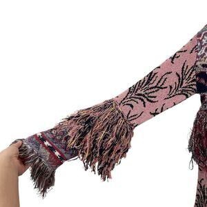ETRO Jacquard Knitted Linen Cotton Blend Boho Fringe Tassel Cappotto Cardigan 40