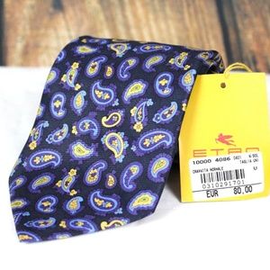 ETRO MILANO MEN'S TIE NEW 100% SILK MADE IN ITALY BLUE YELLOW PAISLEY
