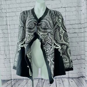 ETRO MILANO wool cardigan wrap sweater Jacquard print black white size 46 10