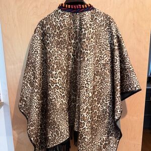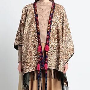 ETRO Milano wool cape / cloak - leopard print, fringe, woven edging SHOWSTOPPER