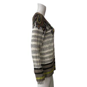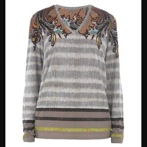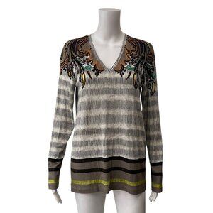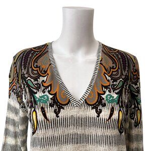 ETRO Multi-Color Geometric Striped V-Neck Shirt size 6