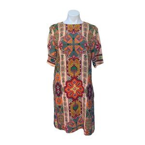 ETRO Starman Habotai Shift Dress. An archival, oriental paisley from the Etro vaults patterns this simply cut jersey dress in a trove of vibrant and earthy hues. This dress gives off 1960s bohemian luxury vibes.