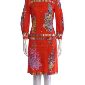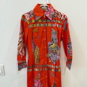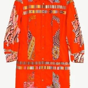 ETRO - Orange 100% Cotton Button up Long Sleeve Shirt Dress, Size IT42