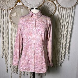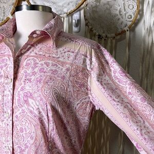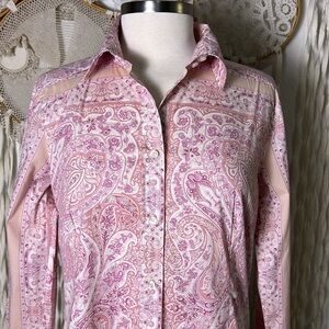 ETRO Pink and Peach Paisely Long Sleeve Button Down Blouse 46/10