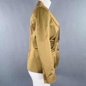 ETRO Size 8 Olive Cotton Blend Ruched Single Breasted Jacket Blazer