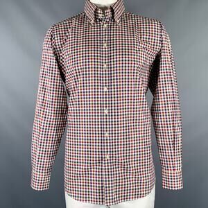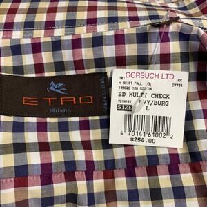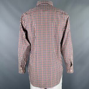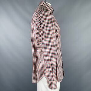 ETRO Size L Navy Burgundy Checkered Cotton Button Up Long Sleeve Shirt