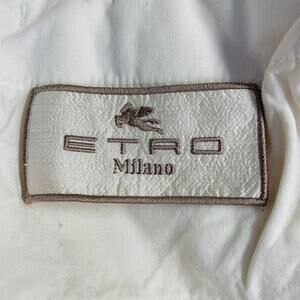 ETRO Size M Cream Eyelet Denim Fringe Trucker Jacket Blazer
