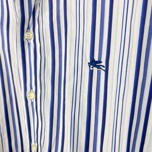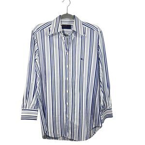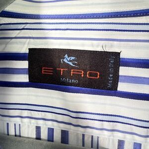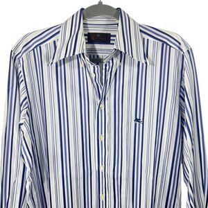 ETRO Stripe Collar in White Blue Long Sleeve Button Down Shirt Size 39IT Medium Men’s