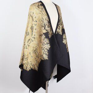 A beautiful and rare ETRO capeBlack base with a metallic gold paisley patternLonger length style