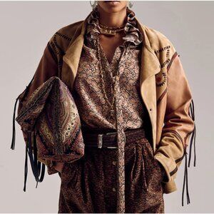 ETRO leather suede jacket 48 US 12 Western Native American tassels