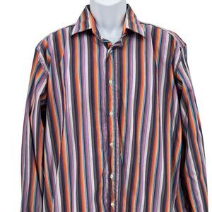 ETRO Button Down Shirt Size 44 Striped Multicolor Long Sleeve Made In Italy