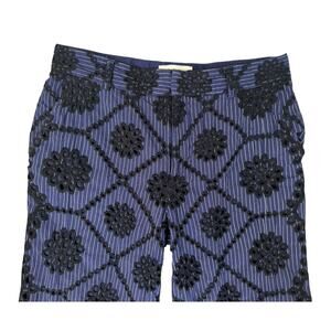 ETT TWA Anthropologie Embroidered Medallion Eyelet Wide Leg Pants Navy Blue 10P
