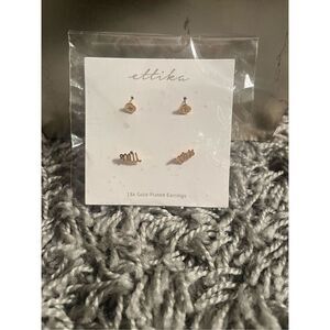 New in package, ETTIKA MRS. 18K GOLD PLATED EARRING STUD SET. Material
