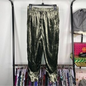 ETT:TWA by Anthropologie Olive Green Crushed Velvet Pants