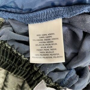 Size XS. Elastic built into waist. Functional pockets lined in navy. Tapered leg. High rise.