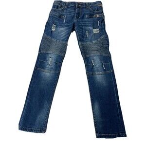 ETZO Men's Biker Moto Slim Skinny Ripped Distressed Denim Jeans 34x32 7520