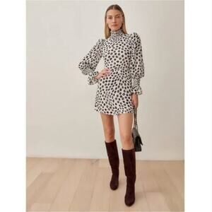 EUC $278 Reformation Archie Long Sleeve Mock Neck Dot Mini Dress
