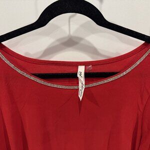 EUC 2xl NY Collection Women Red Bell Sleeve Top with Rhinestones Glam Party NYE