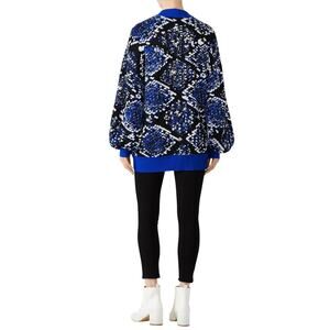 Blue and black python jacquard merino knit (50% Cotton, 50% Acrylic). Sweater. Long sleeves. Mock neckline. 29.2" from shoulder to hemline. Imported.