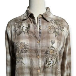 EUC 3J WORKSHOP JOHNNY WAS PLAID BUTTON-DOWN FLORAL EMBROIDERY SZ M