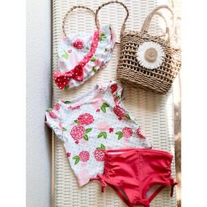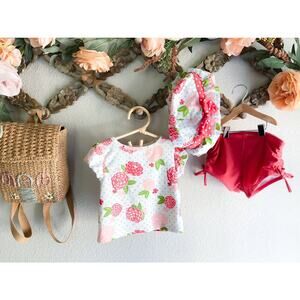 EUC 3pc Floral Rash guard Swimsuit & matching Sun Hat 18-24mths