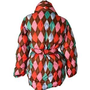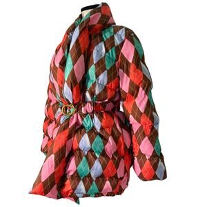 EUC $450 Rachel Antonoff Colorful Argyle Belted Puffer - Size Small