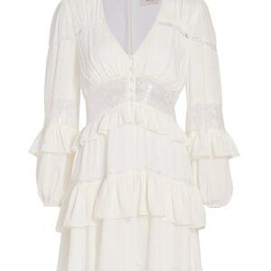 EUC $595 Cinq à Sept Ivory Sanya Ruffle Lace Long Sleeve Silk Minidress Women 6