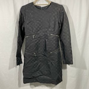 EUC $788 Marc by Marc Jacobs Zip Detail Check Shift Dress Black [SZ 0 2 XS ]