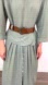 It comes with a belt and closes with buttons in the back