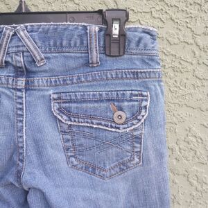 EUC AEROPOSTALE Chelsea Bootcut Cotton/Spandex Button Pocket Jeans 3/4 Long