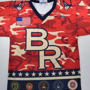 Excellent used preowned condition AK Athletic Knit military armed forces hockey jersey. Jersey represents the Army, Navy, Marines, Air Force & Coast Guard. Jersey doesn't look like its really been worn, no spots stains or rips. Please see pics for detail & measurements.
