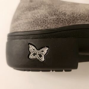 comfort. Stone Wall has a distressed gray/taupe leather upper and three silver colored button details on either side of the peek-a-boo strap (a part of any good penny loafer). With superior arch support, plenty of room in the toe box this shoe is made for walking. The Alegria Taylor Stonewall will make your feet Happy!